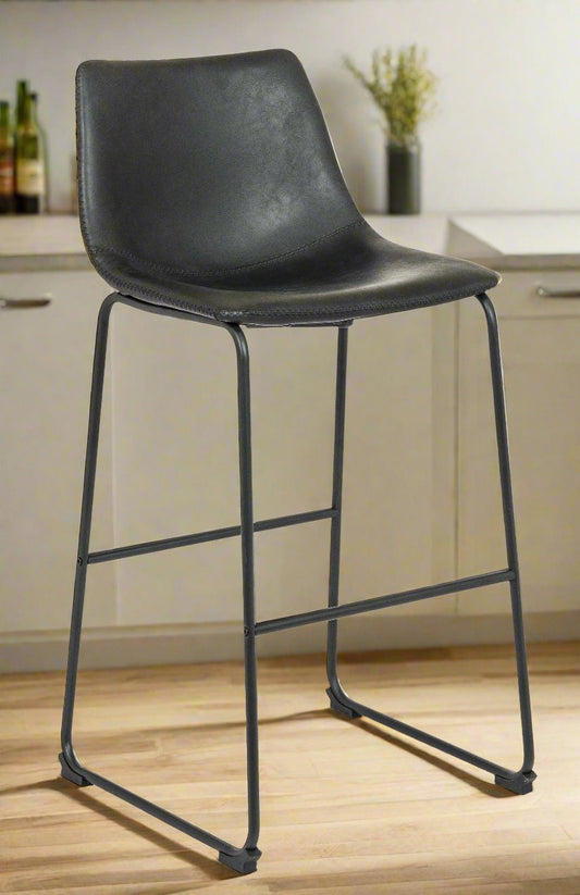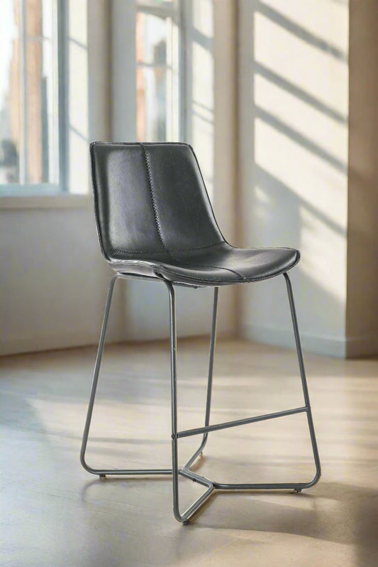 Black 26 Inch Counter Stool Vegan Leather (Set of 2)
