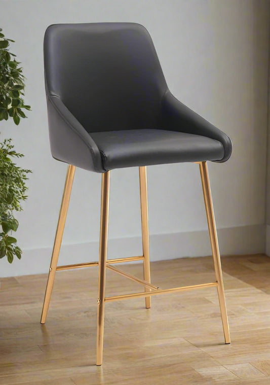 Black 26" Counter Stool With Golden Legs (Set of 2)