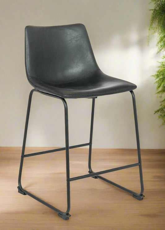 Black Upholstered 26-inch Counter Height Stools Vegan Leather (Set Of 2)